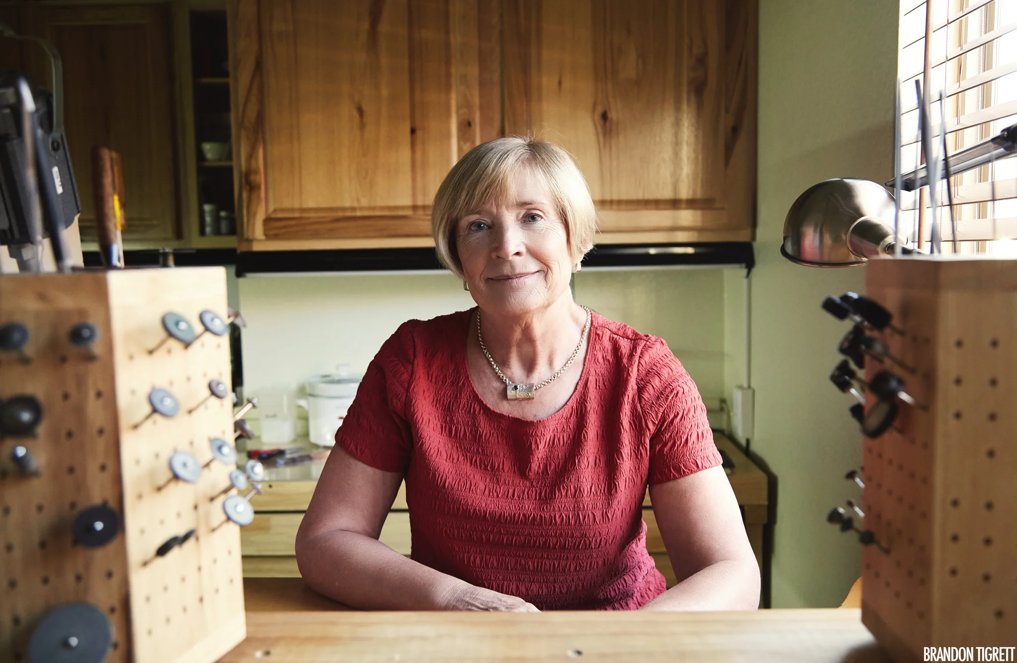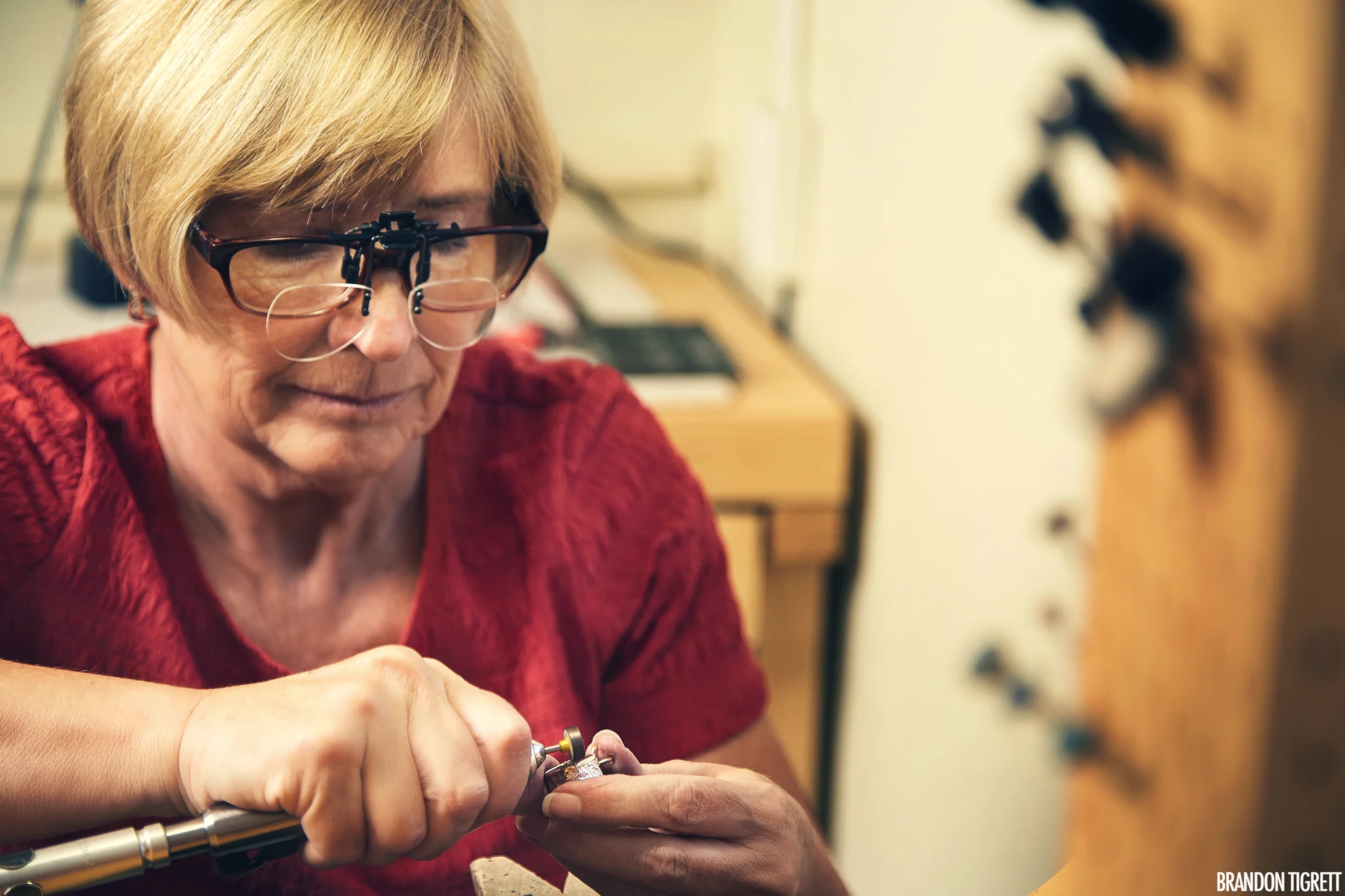 The process is an important part of each piece, but even more important is the person behind the tools. Just like it takes more than an expensive camera to create a beautiful photo, Donna is the real reason for such enchanting designs. A true master of her craft. At first I thought of taking some portraits of her in her workspace which you can see below. But, I wanted to run further with the idea that it's her mind that makes the jewelry special not the tools. I wanted less distraction and luckily brought along some seamless which we set up and took some portraits in front of.